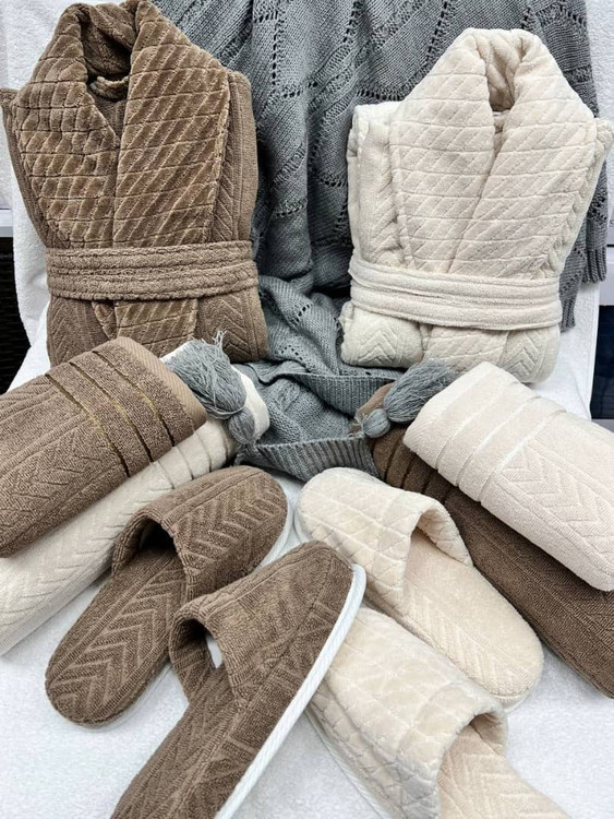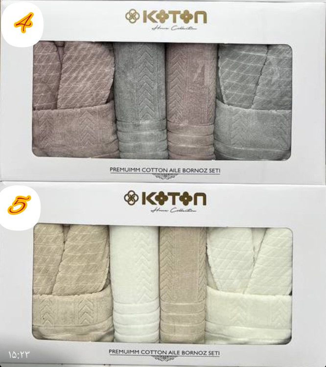 سرویس حوله کوتون شامل دو عدد تنپوش کلاهدار دو عددحوله دست و صورت، دو عدد حوله حمام و یک جفت دمپایی حولهای یا بستهبندی خاص است که آن را به گزینهای عالی برای جهیزیه ست.